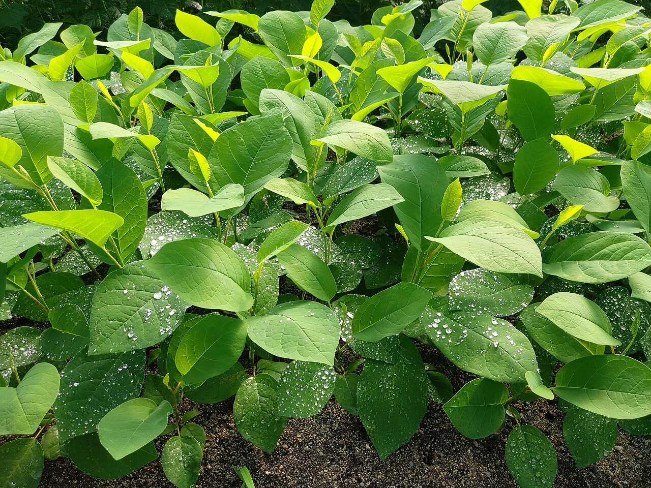 물방울 맺힌 함박꽃나무 묘목 잎