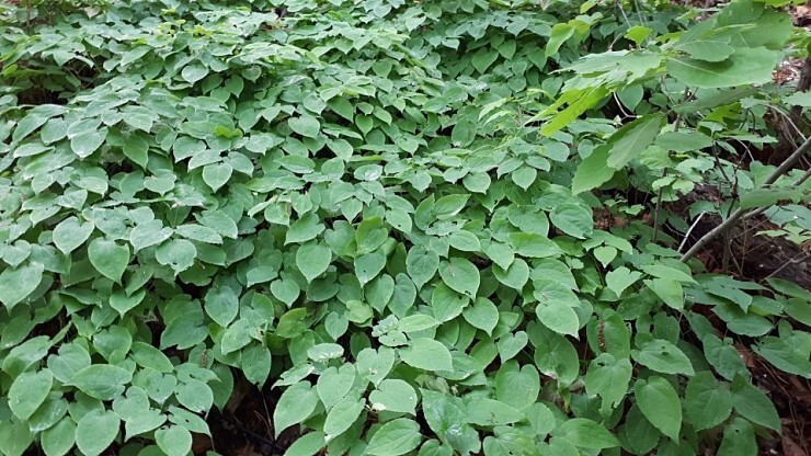 뿌리 번식에 의해 삼지구엽초가 밀식되면