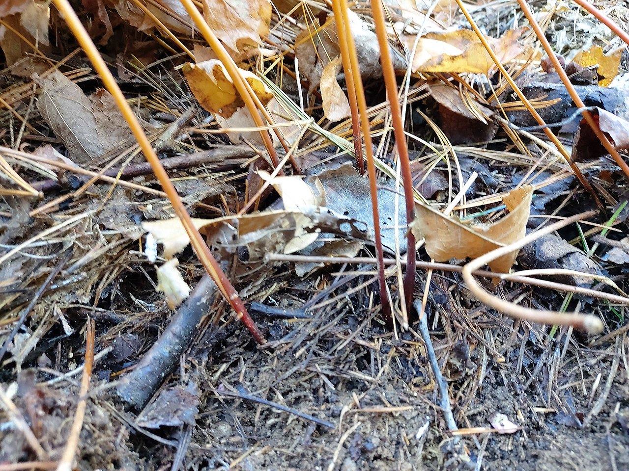 늦가을 갈변기 이후 삼지구엽초 농장 왕성한 뿌리 번식을 위해 잎을 채취하지 않은 곳