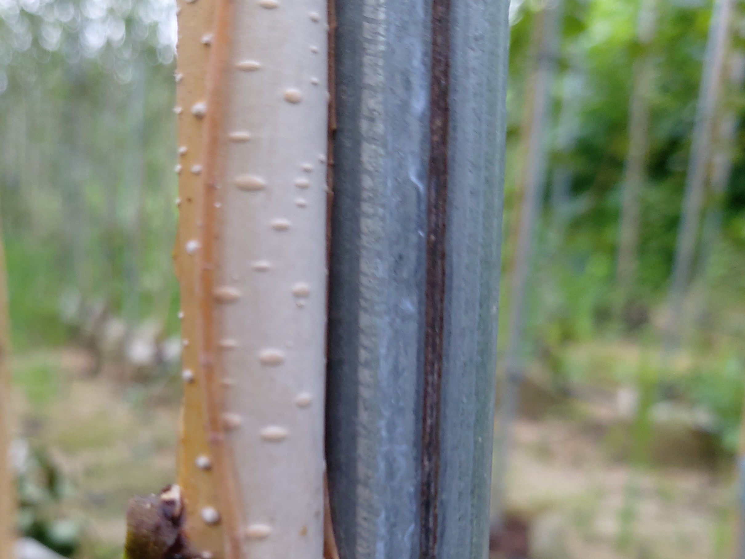 우량묘목을 노지 이식 2년차 여름부터 이런 모양으로 수피가 터지기 시간