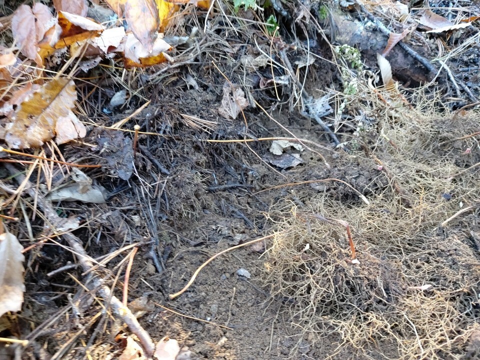 자연림 숲에 삼지구엽초 뿌리 이식한 곳 - 이른 봄 풍경