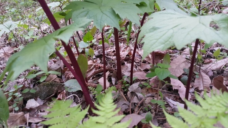 홍풍취 : 대궁이 푸른 병풍취 변이종으로 붉은 대궁이 특징인 홍풍취